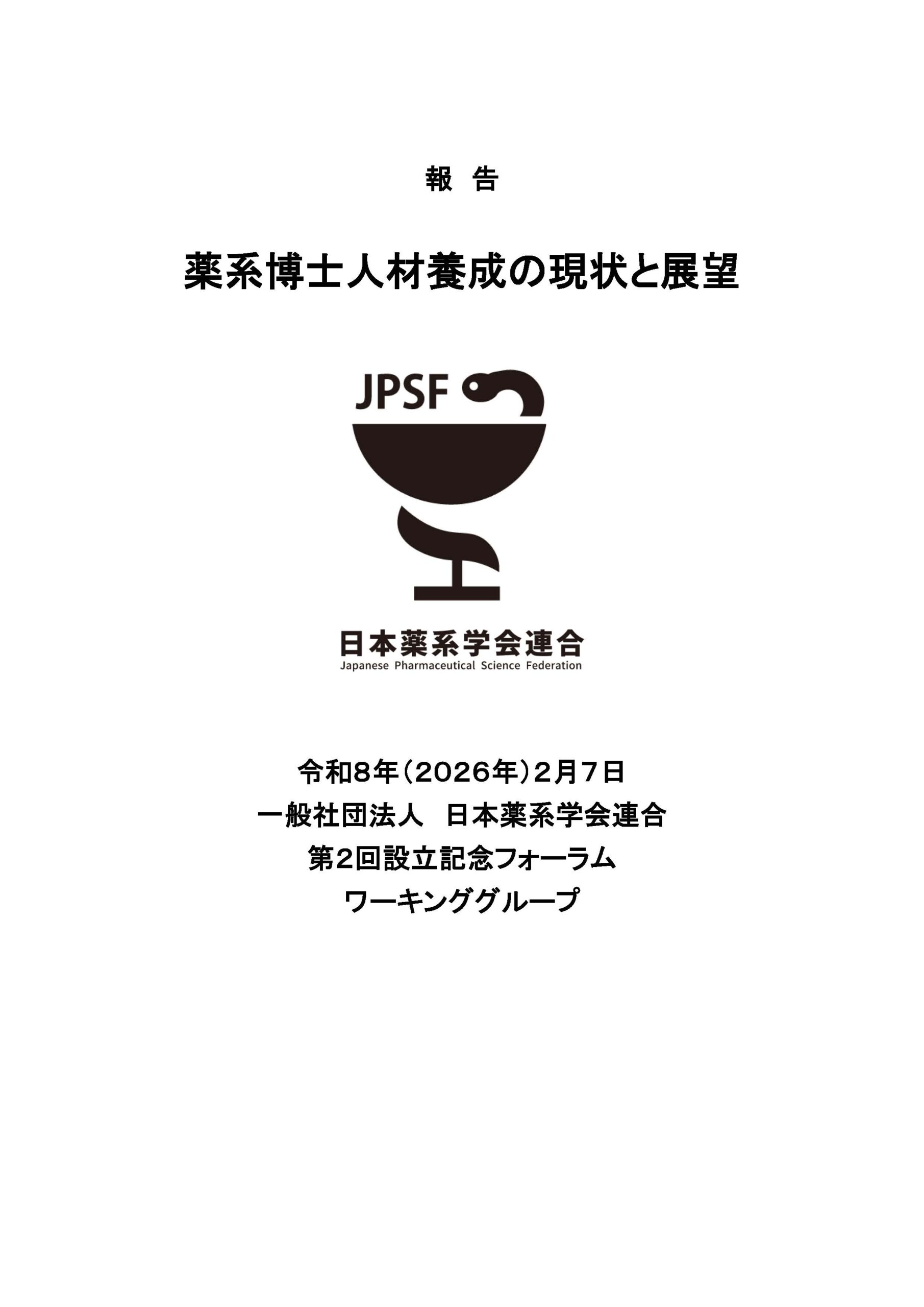 2026年2月7日 日本薬系学会連合は「報告:薬系博士人材養成の現状と展望」を発出しました。これは日本薬系学会連合として初めて意思を表出するものです。